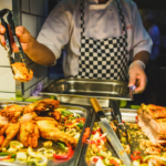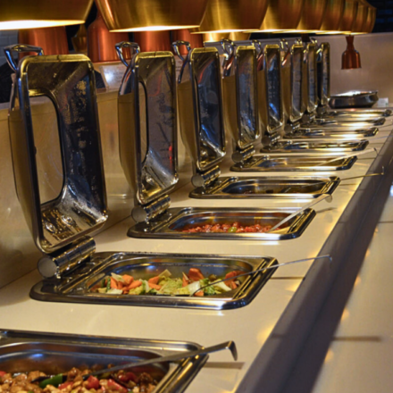 Mr. Basrai’s World Cuisines offers an all-you-can-eat buffet experience with flavours from around the globe, including Indian, British, Chinese, Thai, Japanese, Mexican, Italian, and American cuisines. Guests can enjoy pizzas, grilled favourites, curries, stir-fries, and traditional carvings, all freshly prepared at live cooking stations.